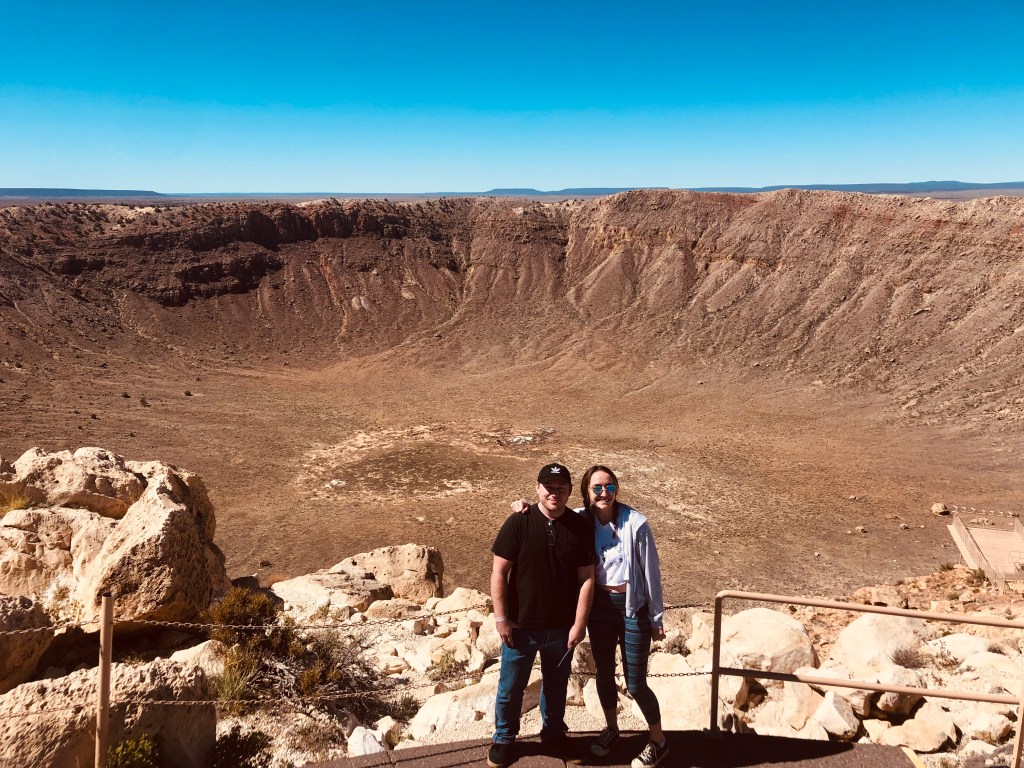 This is my first blog post for ASTRO2110 The Solar System. I am really excited for this blog. I hope to discuss many fun space-related topics, including craters like the one pictured above. I visited Meteor Crater on a road trip from California to Nashville with my brother. This crater is spectacular and definitely worth the visit. Thanks for reading! There will be more to come soon!